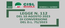 È stata pubblicata sulla Gazzetta Ufficiale n. 190 del 16 agosto 2023 la legge 10.8.2023 n. 112, di conversione, con modificazioni, del decreto legge 22 giugno 2023, n. 75, contenente disposizioni urgenti in materia di organizzazione delle pubbliche amministrazioni. La norma comprende anche diverse disposizioni che riguardano in modo diretto o indiretto la scuola e il suo personale: dalle modalità di svolgimento dei concorsi ordinari per docenti banditi nel periodo di attuazione del PNRR alla gestione delle graduatorie dei concorsi 2020, dai percorsi di formazione iniziale e abilitazione all’insegnamento a misure specifiche per le scuole paritarie, dai compensi per i componenti delle commissioni di concorso alla quantificazione dei posti per le assunzioni dei docenti di religione cattolica.